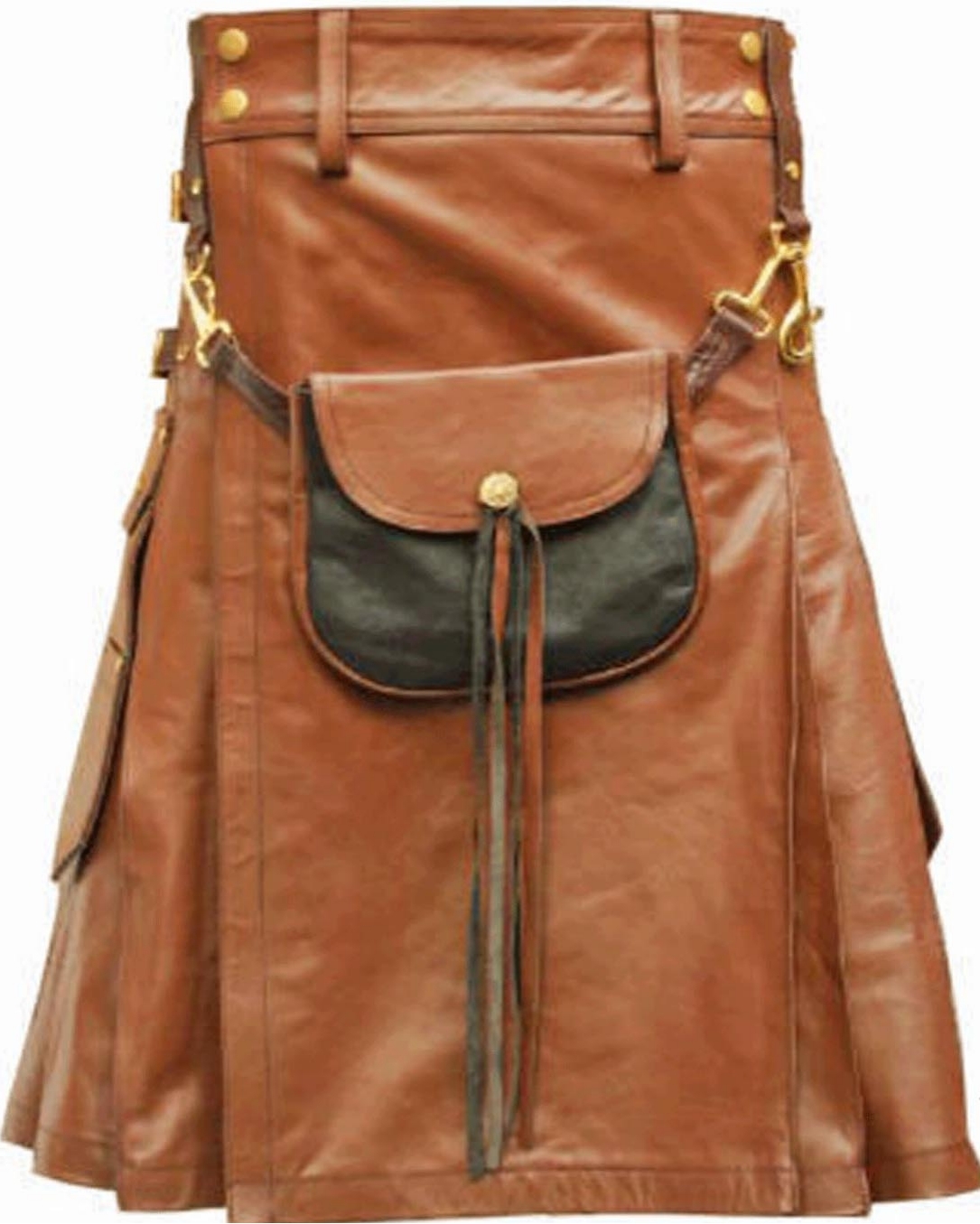 Brown-Leather-Kilt-With-Detachable-Sporran